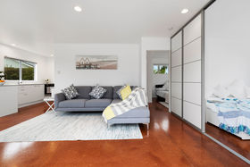 Where can you buy a property under $1M? This property as a well maintained comfortable, cosy easy care holiday home, however could be a permanent home for a couple who would like space for a hobby workshop, business storage or a small yoga/music studio. The north facing home has an open plan living area, 2 bedrooms, 1 bathroom and laundry. A separately located road frontage single car garaging/workshop also has a single bedroom and bathroom which has been professionally installed however requires regulatory consent. This would be perfect for an extra guest or extended family. The accommodation is of entry level, high standard and excellent layout. Ancillary improvements are substantial hardwood timber decking areas, lawns, landscaping, concrete driveway, 2 PVC water tanks, and at the rear of the property, a garden shed and another small well appointed fun "dolly" house, that the owners have used for their grandchildren to sleep in when visiting.