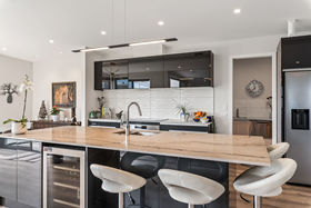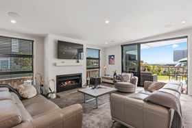The ground floor is elevated to enhance the ocean views from the open plan area, and master bedroom suite. There is also a butler's pantry, office, laundry and guest powder room on this level and the layout has been designed to accommodate single level living. The upper level of 3 guest/family bedrooms, family bathroom, guest ensuite and second living area, provides separation and privacy from the master bedroom making this a perfect versatile home for permanent or holiday living, with overflow for visiting family members.