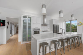 The upper level bedroom wing comprises of one large bedroom, one bathroom/ensuite and an adjoining pyjama lounge with mini bar/kitchen suitable for extended family guest accommodation or teenage hangout.