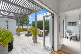 There is so much to love about this home; a central sheltered private courtyard; the high stud spacious light filled dining and living areas opening out to endless sea views over the harbour to Point Wells and the Whangateau coastline; the master bedroom suite with balcony where simply waking up to the stunning sea views makes you very happy.